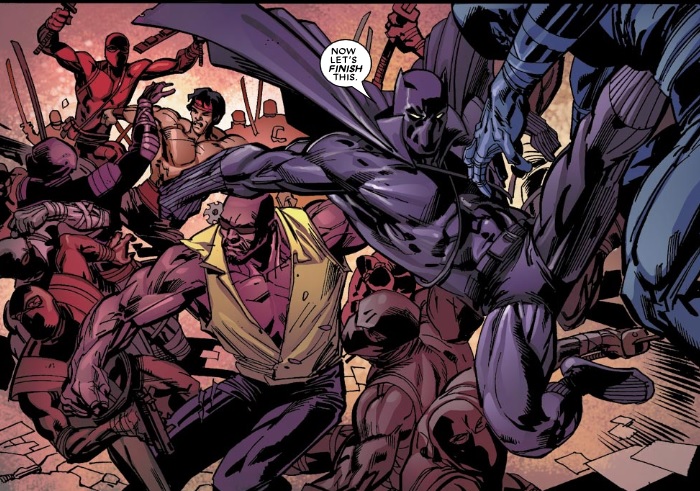 Klaw’s arm is rebuilt by the Belgium government and he starts putting together a team of villains to invade Wakanda and take down the Black Panther, by enlisting other C-listers like Rhino and Radioactive Man (though not even the same Radioactive Man that was a member of Thunderbolts). Despite all their technology and defenses the villains manage to break through with the assistance of a neighboring African country (everyone is kinda super jealous of Wakanda, including the USA, and constantly looks to exploit them).