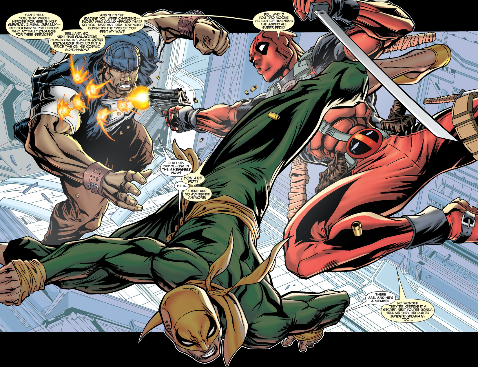 The other stories are varying degrees of quality, with the only notable importance to the series continuity being Deadpool stealing technology that allows Cable to simulate his lost telekinesis and telepathy. It leads Deadpool to a fun fight against Luke Cage, Iron Fist and the B.A.D. Girls.