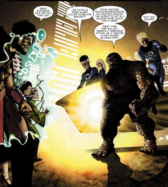 The war begins in earnest when a small team lead by Gorgon disguise themselves and infiltrate a concert hall. With Jolen the plant master’s help they disable everyone inside and attempt to tell the world about how they were wronged and the crystals were stolen. Unfortunately Jolen ends up going a bit too far and murders a bunch of innocent people left and right, and they’re quickly subduded by the Fantastic Four.