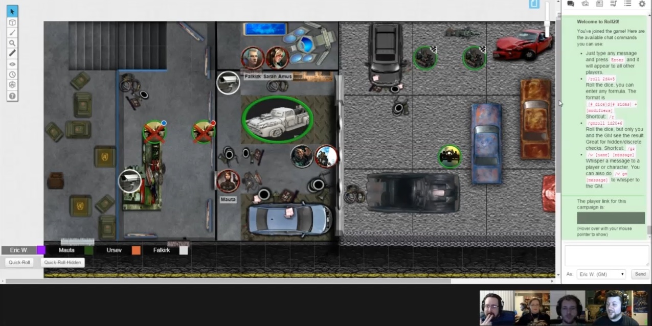 The players returned to the bar (reusing meticulously crafted scenes in Roll20 – woo!) to investigate and look for clues, leading to a fun bit of role-playing and exploration. I set it up as a fairly easy trail to follow, leading to a car bomb in the alleyway. The players traced it to a Jay-T’s Automotive. They arrived to a car garage and auto parts shop in the dead of night. I built it with multiple entrances and security measures, and emphasized a stealthy approach. [Read Session 2 Report]