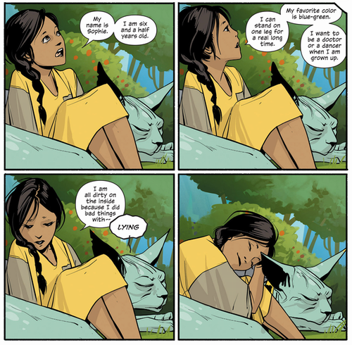 You can tell Brian K. Vaughn really loves the Heist character, as he’s an obvious cipher for many of his thoughts and opinions on being a writer, and a writer’s relationships with artists, other writers, and the audience. Much of Marko and Alana’s scenes in Volume Three are mostly just them hanging around Oswald’s place talking books, relationships, or the nature of war, and I’ll be damned if it isn’t riveting.