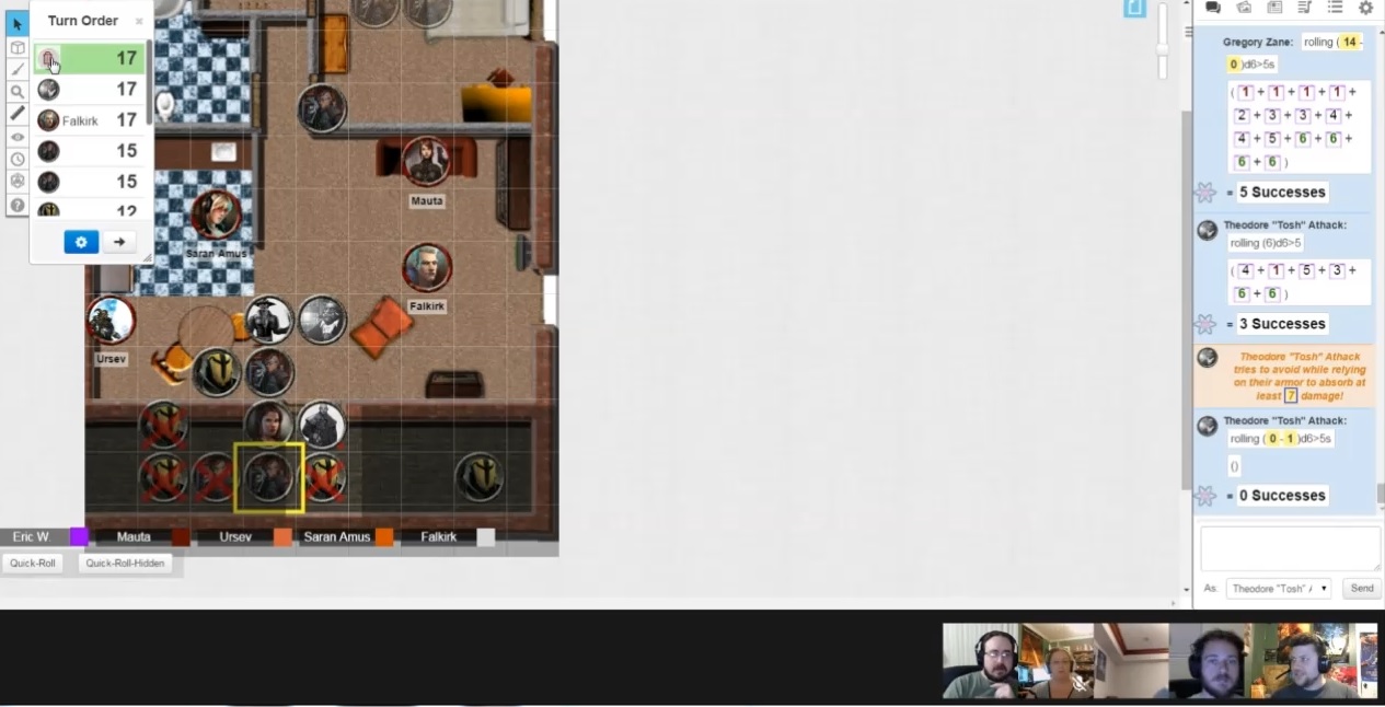 The final battle was filled with a dozen NPCs, but I quickly killed off many of them off screen to create a sense of chaos and deadly force. Zane’s team murdered most of the Knight Errant forces, then Mauta triggered some C4 she’d strategically laid around the windows and exits of their safehouse, killing some of Zane’s runners. The players had Detective Tosh Athack on their side, but hilariously my first roll with him caused an errant grenade to go off right in his face, knocking adept Falkirk unconscious.