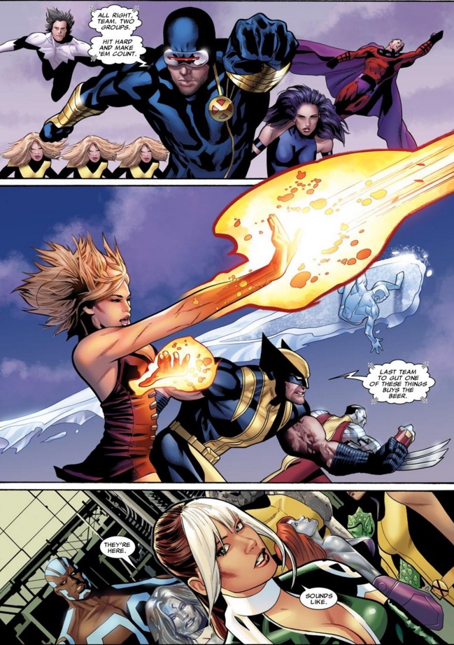 The final two issues of “Nation X” involve a dumb plot thread from “Utopia,” when Emma Frost got a piece of Sentry’s Void stuck in her mind after shutting him down. Scott has to enter her mind to free her, then the reverse happens in the following issue. He and Emma’s relationship have already been focused on to death by better writers (cough Joss Whedon cough) and I didn’t need to see yet another strengthening of their trust and bond.