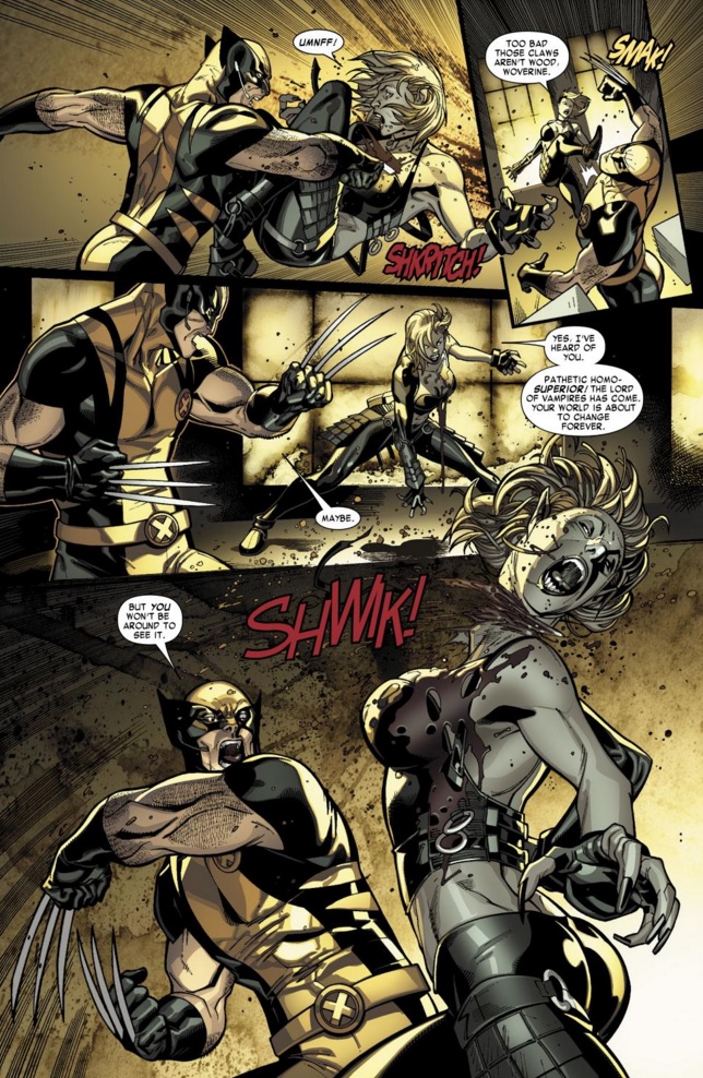 Her arc has she goes through the fightening drug-addict-like withdrawl of her transformation is intriguing, and soon she’s joining the vampires as Wolverine goes after her. She actually ends up biting and turning Wolverine, though Xarus isn’t sure if Logan can even contract vampirism with his healing factor. Turns out, Cyclops has a plan all along.