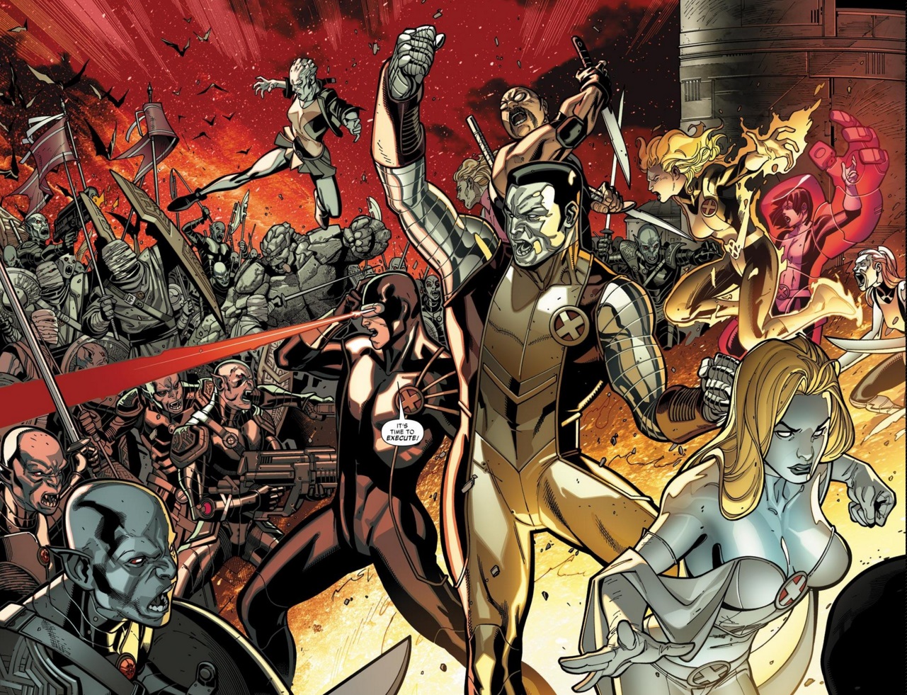 Xarus’ plan is sunk when Cyclops reveals his plan – they’d artificially stopped Logan’s healing factor and could restart it with the push of a button, freeing him from the curse. With a now very pissed off Wolverine the X-Men easily fought back. Plus there’s a number of X-Men with “tough skin” that could be used on the frontlines, like Colossus, Emma Frost, Husk, Armor, and Mercury.