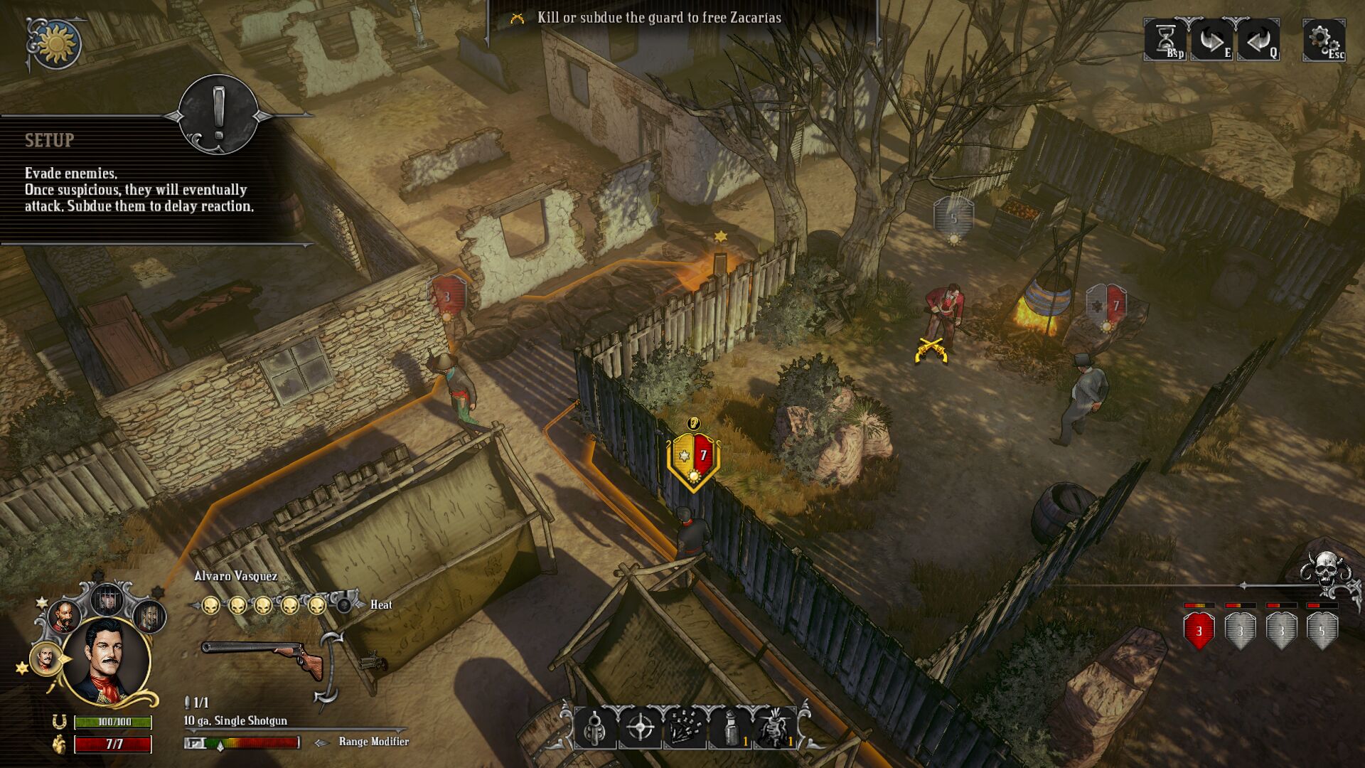 So, the combat. The tactical combat is really fun. Each scenario has 3-5 combat encounters, sometimes even back to back. The level designs are big and filled with large two story houses and forts you can fortify or infiltrate.