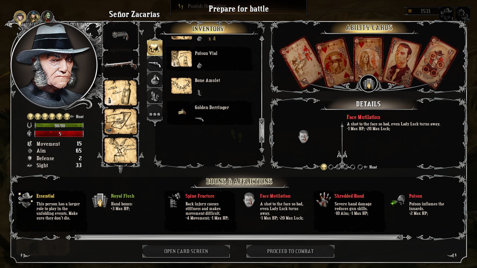 Skills are tied to equippable poker cards, which is an appropriately thematic touch. You can mix and match them on any character, but this has the disadvantage of making nearly every character completely interchangeable and forgettable. And thanks to the Luck resource, I rarely had a chance to ever use any skills anyway.