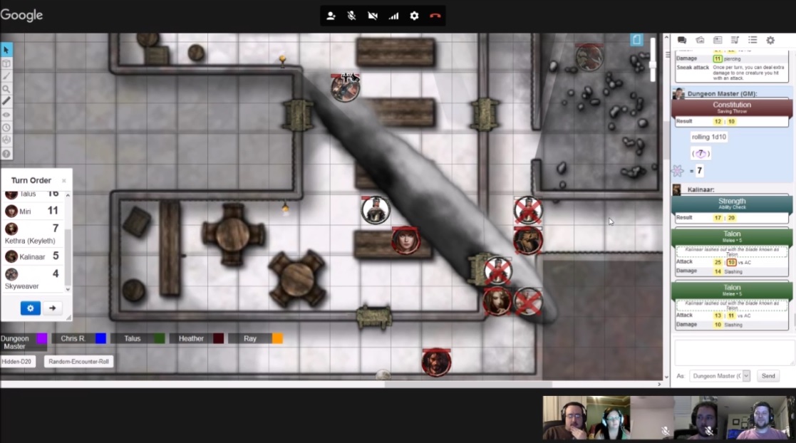 The party continued East and I threw in some haunted ghost noises. I had used these previously at the entrance to the whole dungeon. I figure Kenku would try to frighten off intruders, but I suppose I could’ve also used it to draw them near. The sound effects are fun and Roll20 makes it really easy to incorporate them.