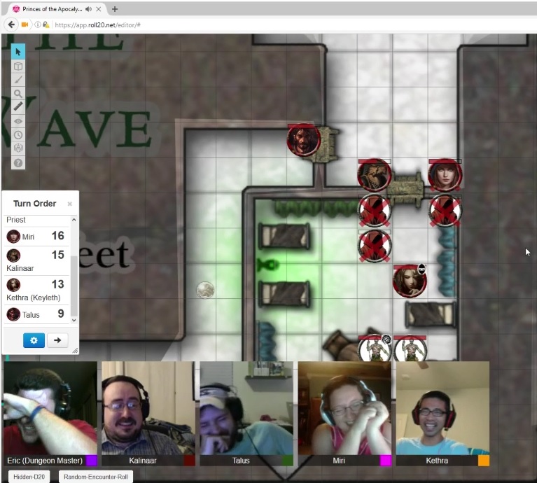 The result was pretty funny. Kethra was still disguised as a cultist, trying to suss out information before slipping in behind while Miri tried to crush the newcomer’s face in. Kethra slammed the door shut behind her, and immediately blended in with the others. She did a fantastic job pretending to be a cultist, talking about the attackers and trying to relay information to the rest of the party. It ended up being really funny.