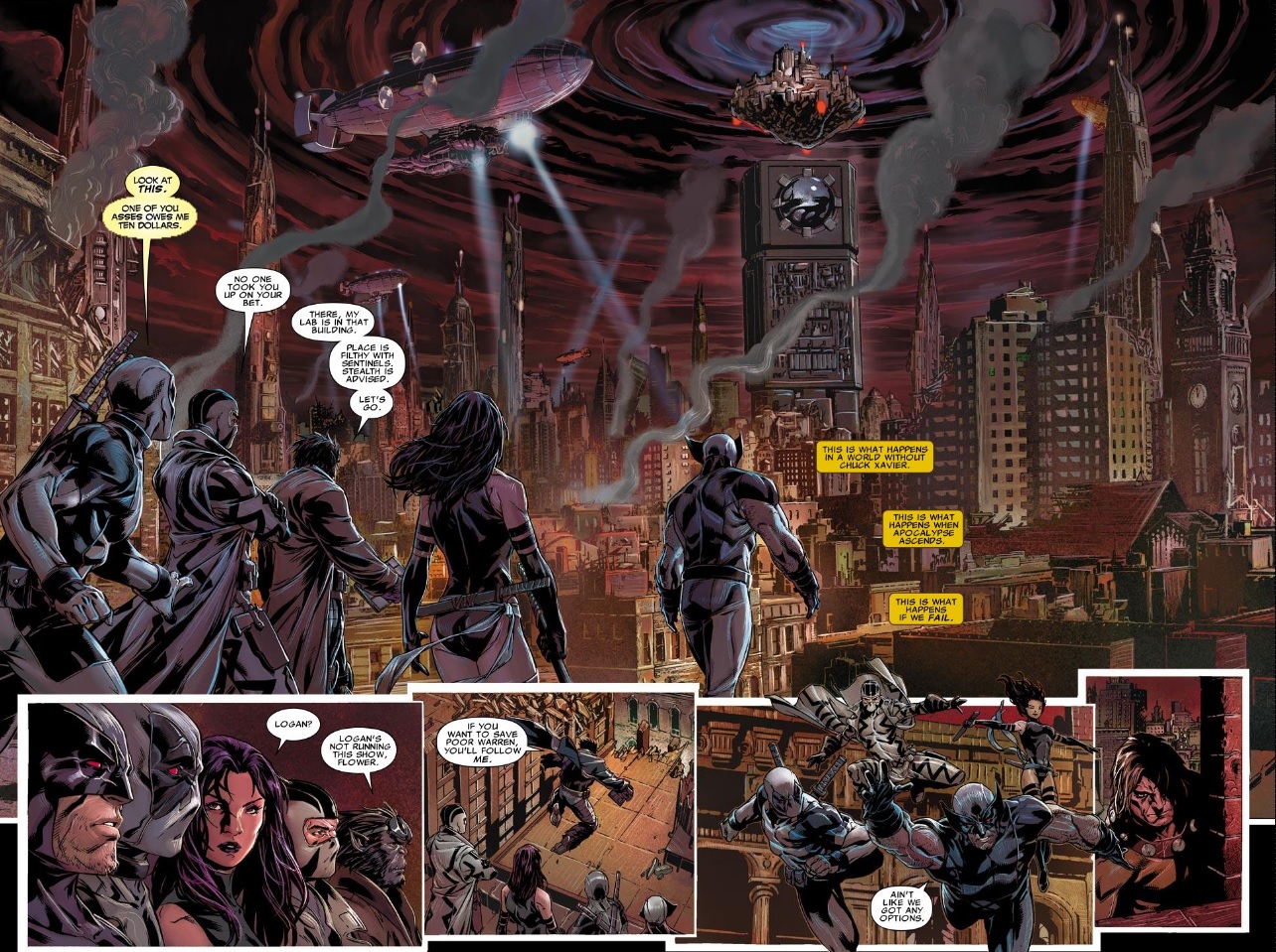 Help does arrive from an unlikely but awesome source – the Age of Apocalypse X-Men team! Using Gateway, Fantomex brings in reinforcements even while the rest of the team gets their ass kicked.