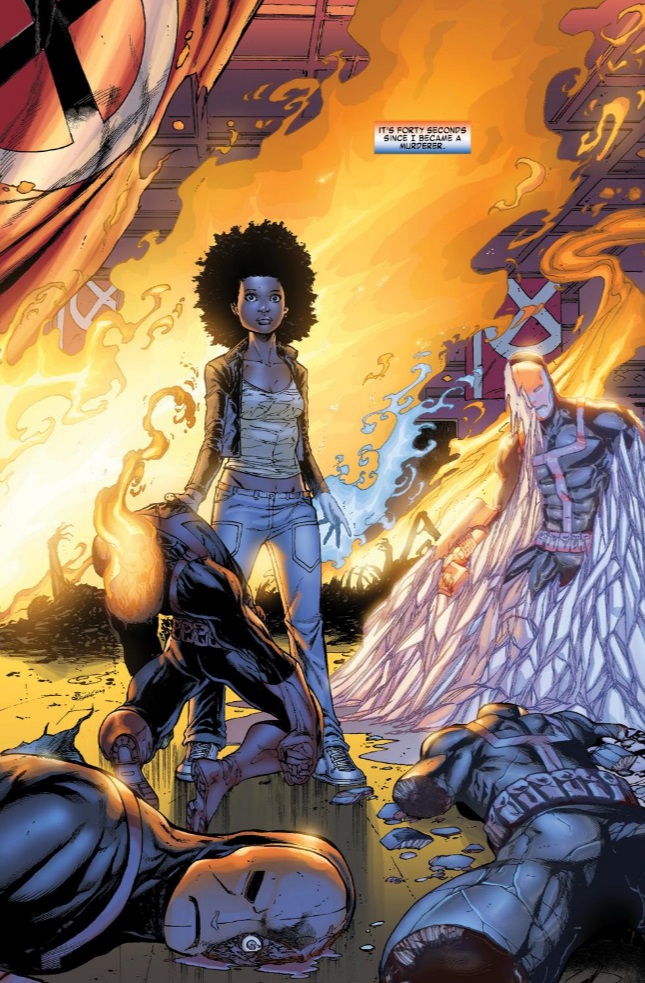 The actual X-Men: Schism tie-ins round out the last two issues of the volume. They focus on youngest team member Idie and her murderous revenge on the attacking terrorist group at the museum.