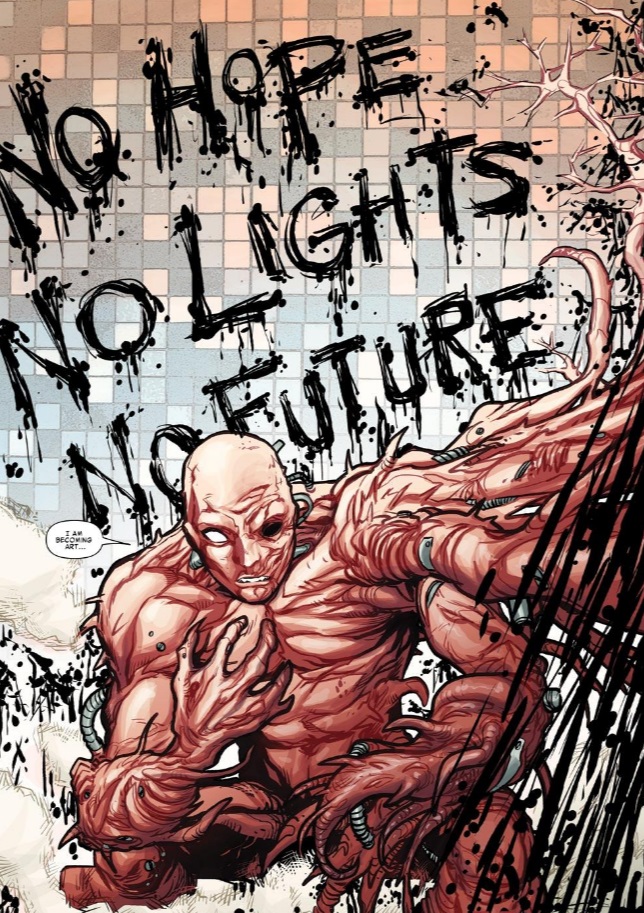 The latest mutant awakening is a young man in Japan, Kenji. Kenji’s mutant transformation is both disgusting and fascinating, as his entire body becomes an organic mess that he can manipulate into various forms, or even detach pieces of himself. He can also grow to gigantic proportions, and it takes all the Lights plus Cyclops and Wolverine to take him down long enough for Hope to subdue him.
