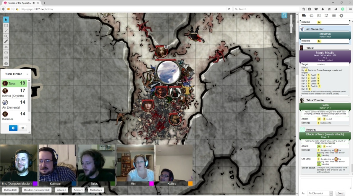The nycaloth did a ton of damage to Miri in a single round, then teleported to try and take down the wizard, whiffing bad on the damage roll.