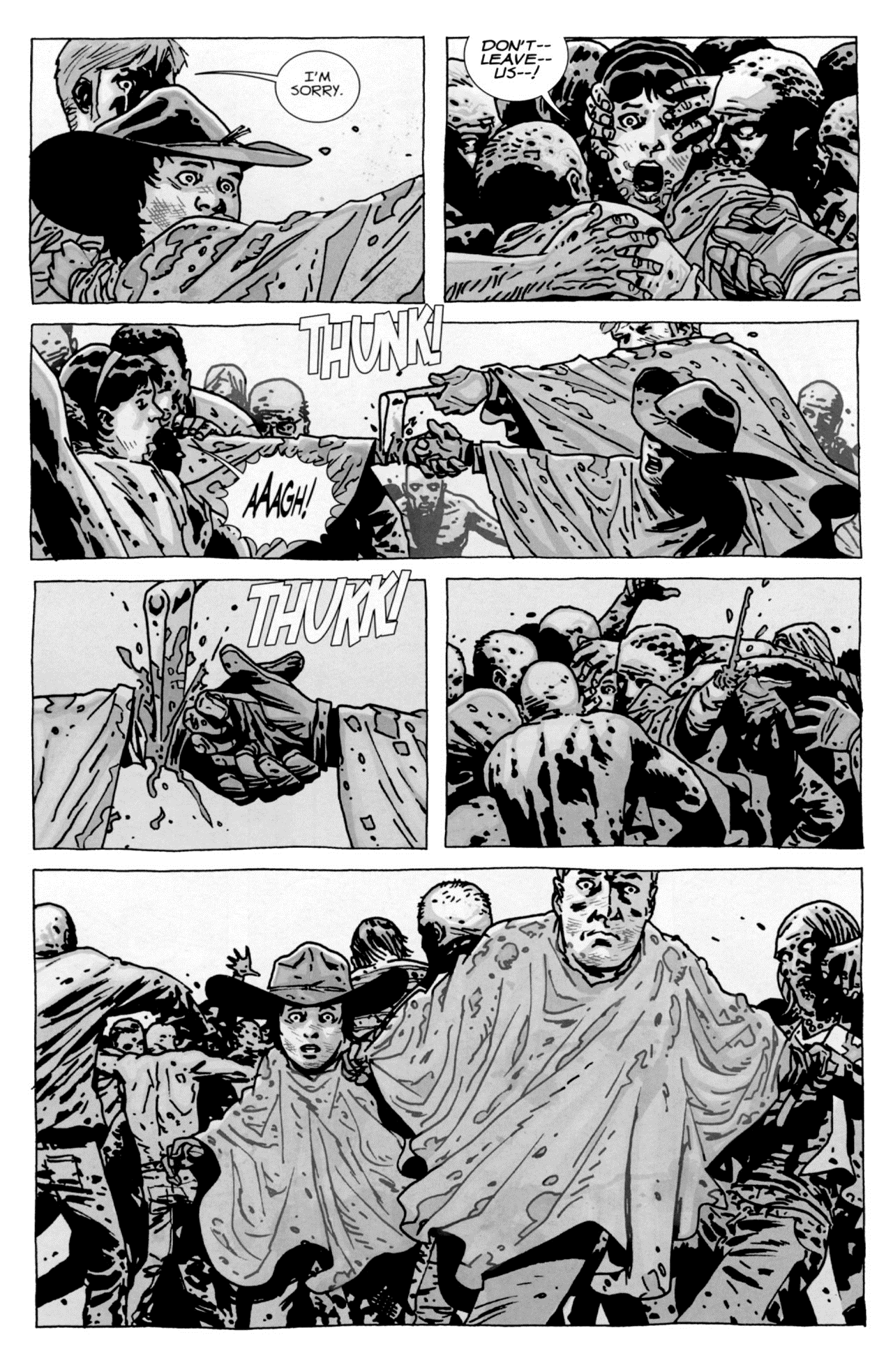 And one of the twin boys kills the other, which is what the show ended up doing with Lyzzie and her sister. Except in the comic, it’s Carl that has to step up and kill the burgeoning psychopath, without anyone knowing (he later admits it to Rick in a touching scene).