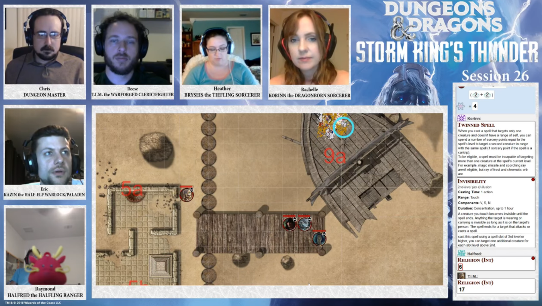 The DM let Korinn use Twinned Spell and a 4th level spell slot in order to cast Invisibility on four of us: Kazin, T.I.M., Bryseis, and herself. That left Halfred and Felgolos to provide a possible distraction, as well as explore the surrounding ruins.