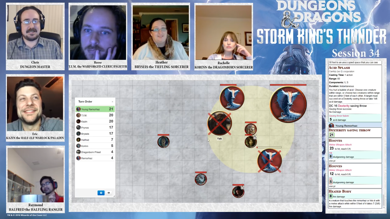 Klauth acquiesced. I critically failed a saving throw, becoming enthralled by Klauth, which offered some fun bit of role-playing. I dove into his mind, racing back centuries to find a meeting between he, the white (whom he did remember and had personally killed), and the blue, who was, as usual, obscured by a lightning cloud.