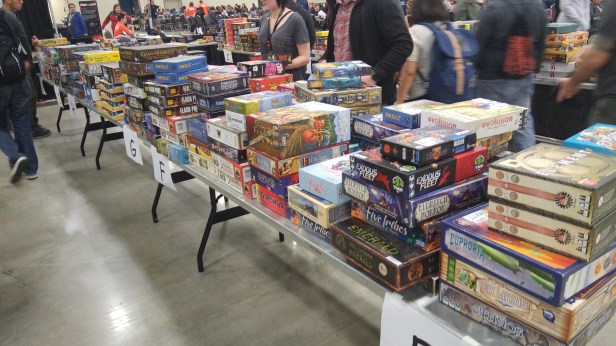 Unfortunately most of the exhibitors were still setting everything up, including getting computers up and running. I gravitated toward the Tabletop Indie Showcase, which is consistently one of the most interesting areas of the entire showfloor. It’s full of new board games, most of which are still in a late prototype phase and planning Kickstarter campaigns for initial print.