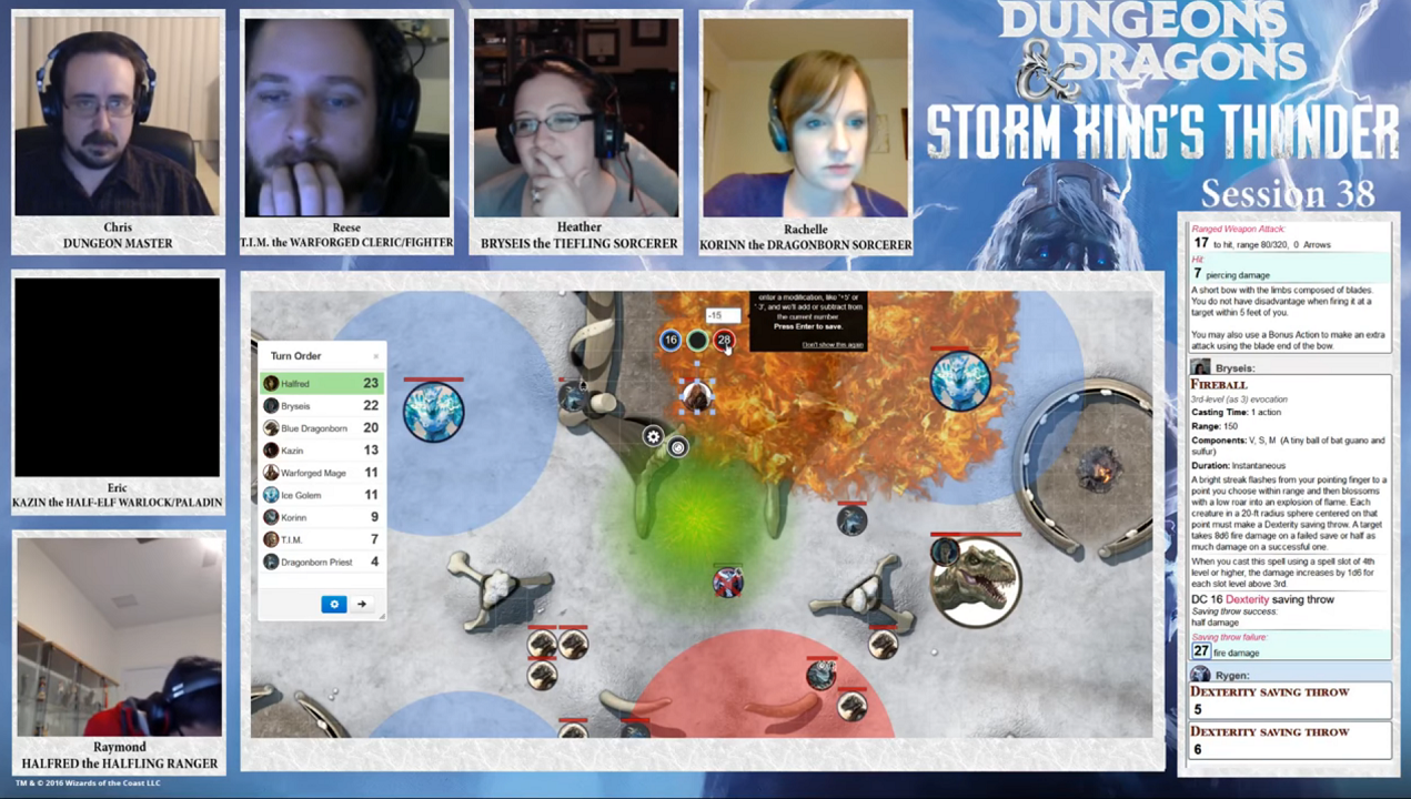 Rygen started things off by materializing a blade made out of lightning. Korinn won the initiative battle and surrounded Rygen in a ringed Wall of Fire.
