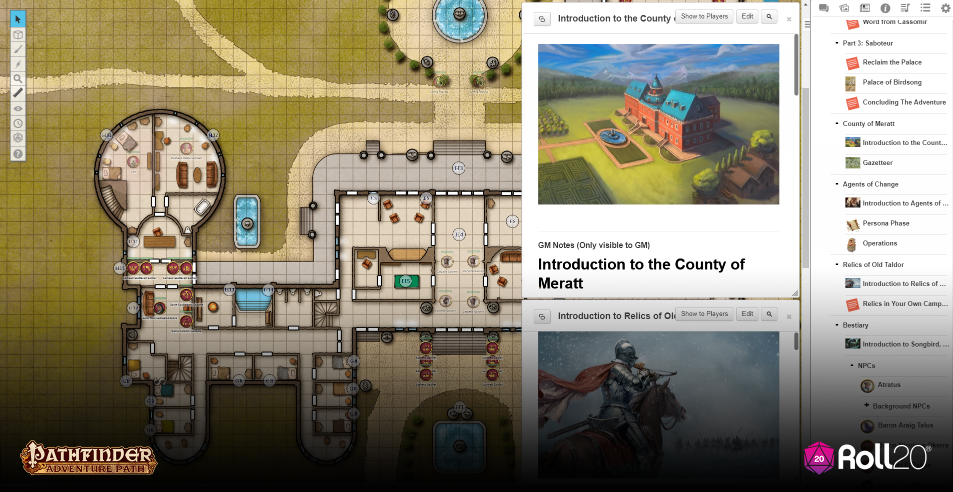 - The Palace of Birdsong map is used in Part 1 and Part 3, but the Roll20 map is only set up for Part 3.
