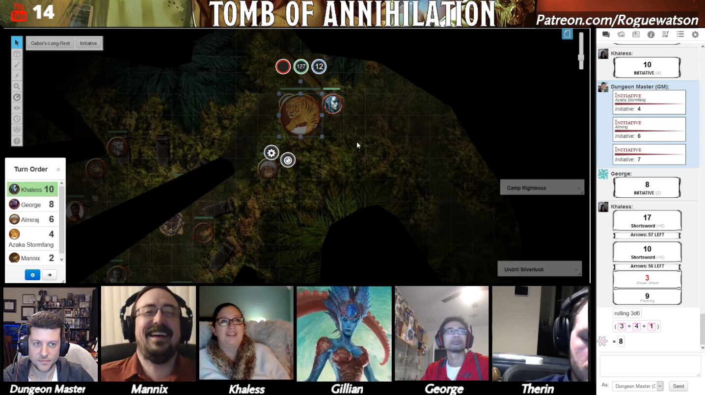 Khaless surprised everyone by dropping her weapon, staring Azaka-tiger in the eyes and tried to appeal to her human side and talk her down. She rolled Animal Handling with advantage (I try to award good role-playing with Advantage) and she responded with a double crit!