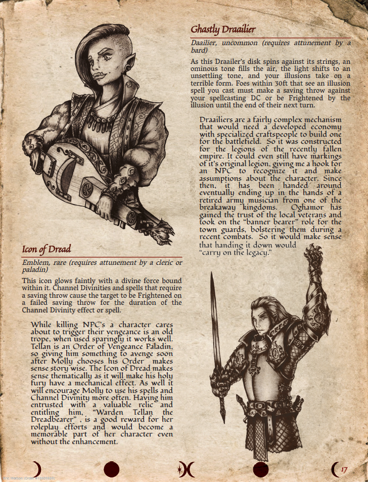 It’s fun to read and gain insight into the design process, and each one provides an excellent example on how to design a personal magic item specifically for your player characters.