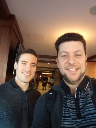 And then when we were resting mid-afternoon in the tabletop area, a fan of our YouTube channel, Ikarus Gaming, who was attending PAX with his son, found us! He was very nice and we took some pics together.