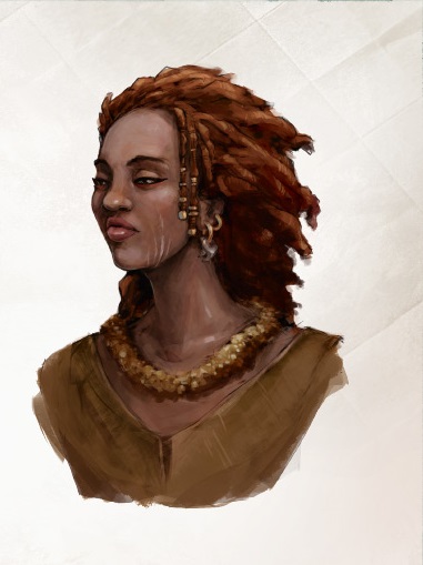 Before Gillian and Azaka were marched into the shrine, Mannix got a chance to question the woman who had previously fought and killed a goblin in the shrine. Her name was Oloma Authdamar, first mate of the Star Goddess. Her skyship had been attacked by pterafolk and crash landed in Chult.