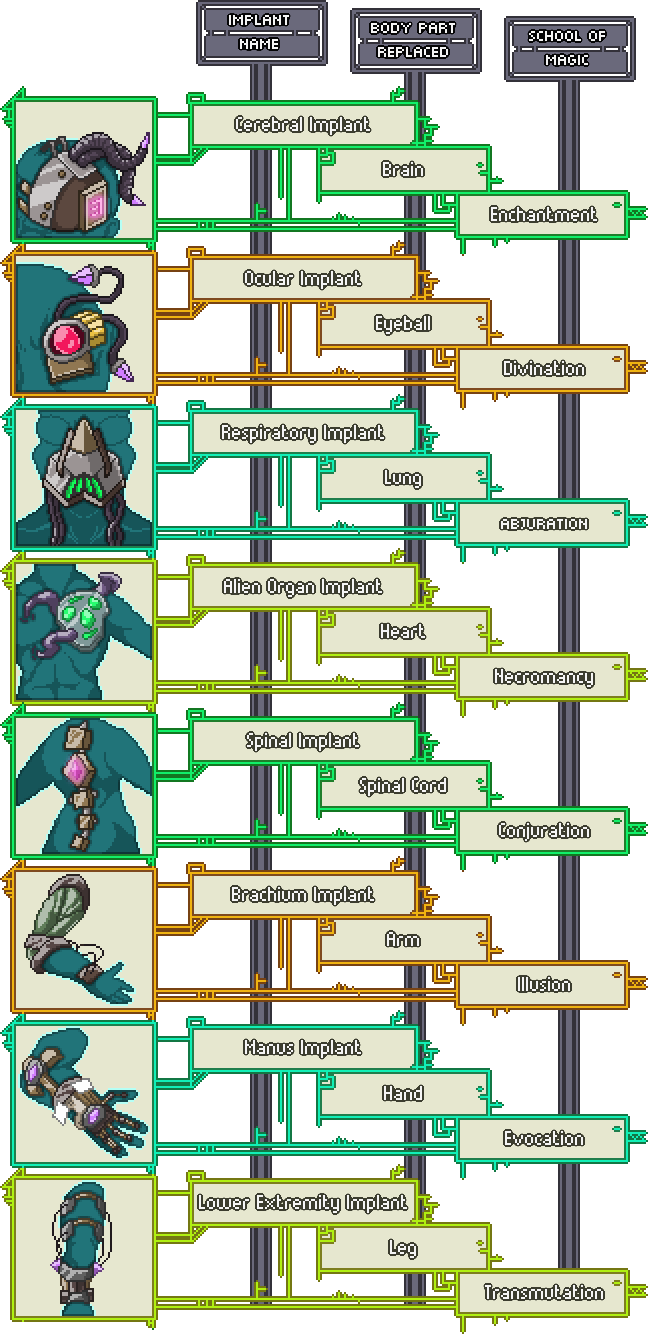 Psyborgs get access to Sorcerer spells (with Charisma as your spellcasting modifier, limited to a school of magic depending on which implant you chose (arm = evocation, eye = divination), though you can also have more than one, up to your CON modifier.