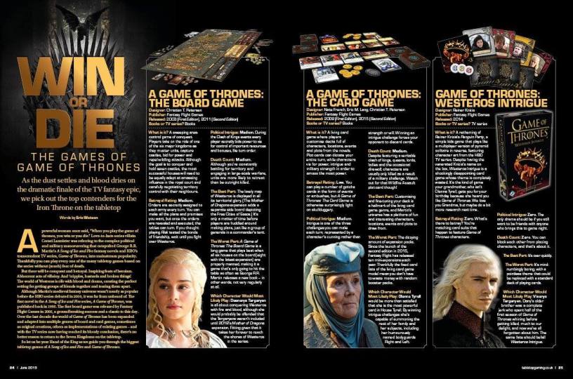Game of Thrones has ended. No matter your feelings about the show, you can read up on the many different tabletop games based on the TV series and novels with my feature in the latest issue of Tabletop Gaming Magazine.