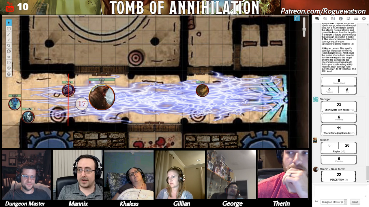 The party short rested after the specter fight from last week, then inspected the nearby throne. My initial plan with the throne was a simple psychic damage trap with a bit of flavoring, knowing my party couldn’t leave a throne un-sat (thanks George). They ended up focusing on it and treating it as more of a puzzle, so I quickly rolled with it. I added a bit of dialogue for when Gillian sat on it, hearing the voice of Umberlee – or was it the priestess? – taunting her.