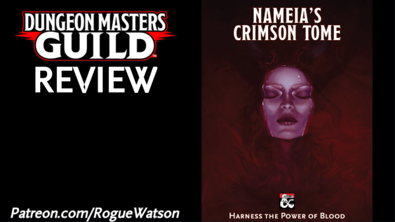 A review copy of “Nameia’s Crimson Tome” was provided by the publisher. Find more DMs Guild Reviews on my website and YouTube channel.