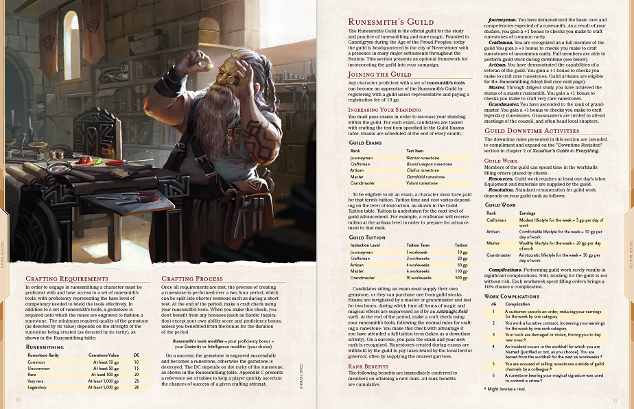 - Rules for joining the Runesmith’s guild and crafting runestones.