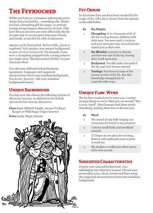 - Two fey-themed backgrounds for low magic campaigns.