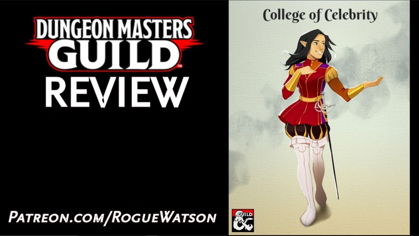 A review copy of “College of Celebrity” was provided by the publisher. Find more DMs Guild Reviews on my website and YouTube channel.