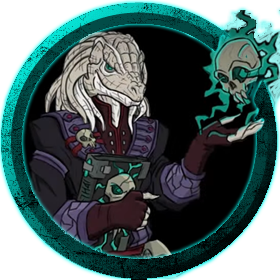 Savra Akkedis, level 2 lizardfolk School of Necromancy Wizard