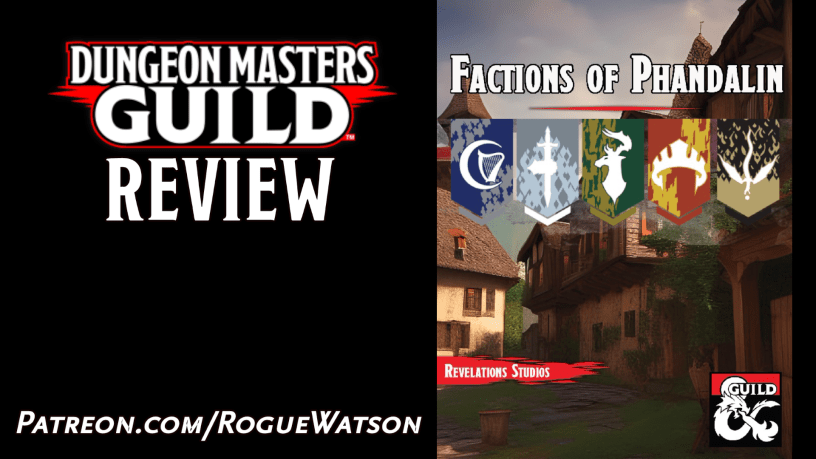 A review copy of “Factions of Phandalin” was provided by the publisher. Find more DMs Guild Reviews on my website and YouTube channel.