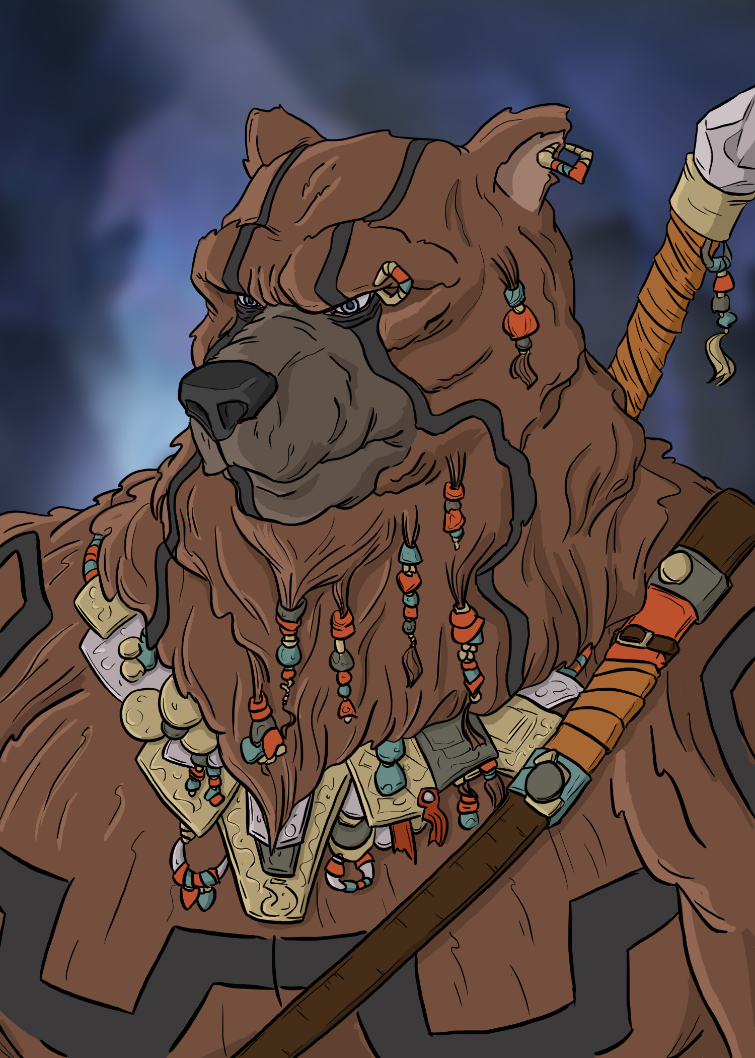 Torben, level 12 bearfolk Ancestral Guardian Barbarian/Fighter