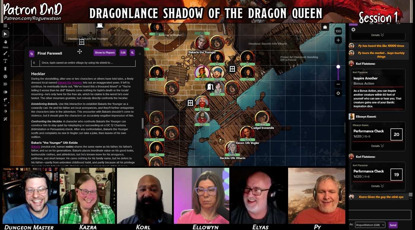 Welcome to Patron DnD, where Platinum-level patrons and I get together to play Dungeons & Dragons via Discord and Roll20. Patrons also get exclusive access to private videos, custom 5e content, and participate in monthly DM Roundtables.